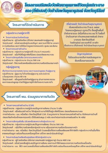 โครงการเสริมพลังวัดพัฒนาคุณภาพชีวิตกลุ่มเปราะบางของ (ที่พักสอฆ์) วัดป่าอัมพวันคุณานุสรณ์ จังหวัดบุรีรัมย์
