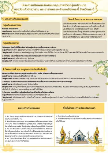 Posted on 22 กันยายน 2025 โครงการเสริมพลังวัดพัฒนาคุณภาพชีวิตกลุ่มเปราะบาง ของวัดแก้วโกรวาราม พระอารามหลวง อำเภอเมืองกระบี่ จังหวัดกระบี่ Post Views: 17 Share: